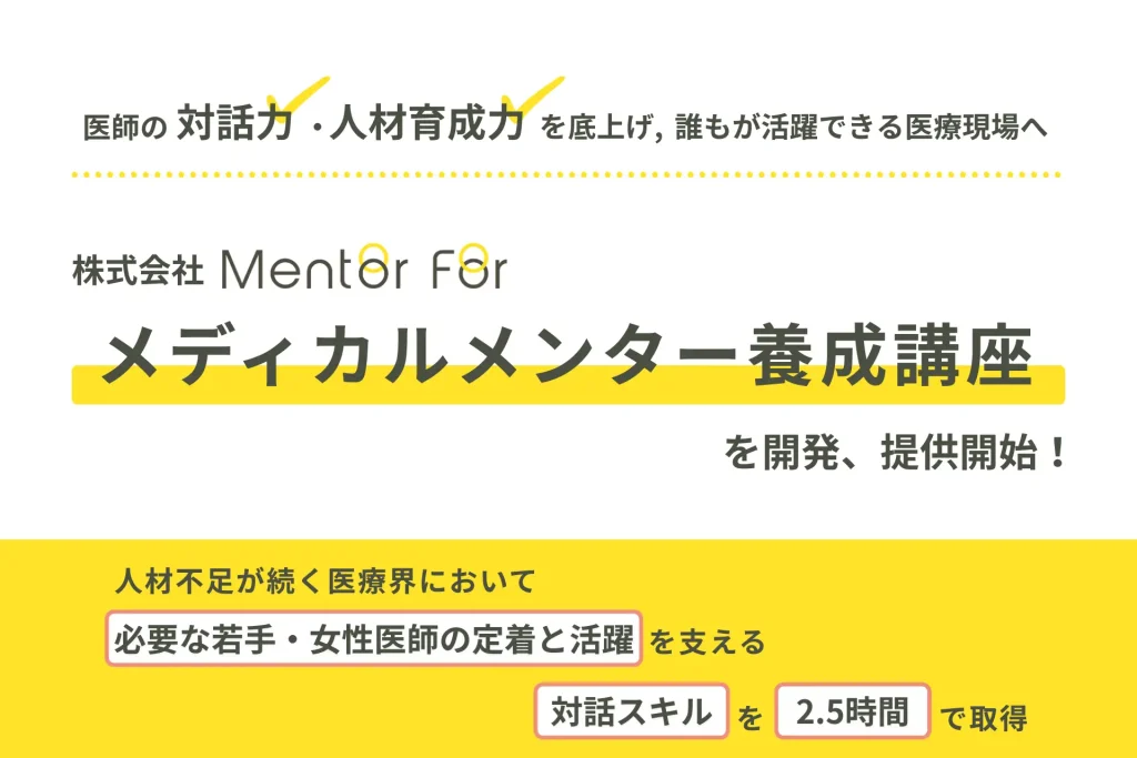 プレスリリース:「医師の対話力・人材育成力を底上げ 誰もが活躍できる医療現場へ 株式会社Mentor For「メディカルメンター養成講座」を開発、提供開始」を公開しました
